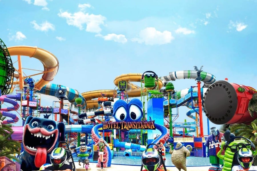 Die Attraktion wird Elemente von Themen- und Wasserparks kombinieren und soll Besucher aller Altersgruppen mit Wasserattraktionen, Landattraktionen, Themenbereichen und Restaurants, Unterhaltung und Live-Shows sowie speziellen Sets und Merchandise-Artikeln anziehen. Themenbereiche zu Filmen wie Hotel Transsilvanien, Jumanji, Surf’s Up und Ghostbusters sind voll mit einzigartigen Wasserrutschen und nassen Aktivitäten.