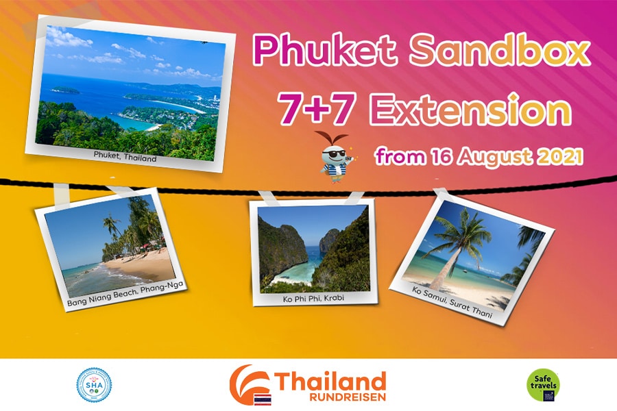 Ab dem 16. August 2021 ermöglicht das Programm „Phuket Sandbox 7+7 Extension“ den dazu berechtigten internationalen Touristen, den obligatorischen Aufenthalt auf Phuket von 14 auf 7 Tage zu reduzieren, die anschließenden 7 Nächte können in der Provinz Krabi (Phi Phi island, Railay Beach, Koh Hai); der Provinz Phang Nga (Khao Lak, Koh Yao Yai, Koh Yao Noi), oder in der Provinz Surat Thani (Koh Samui, Koh Phangan, Koh Tao) verbracht werden.