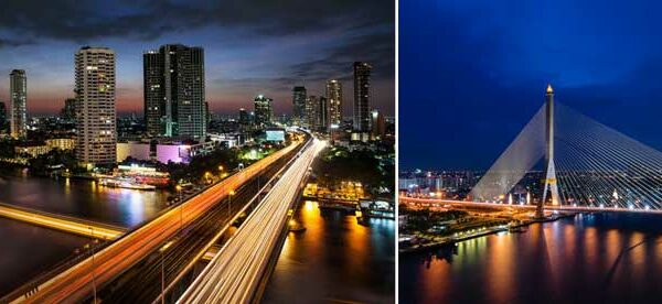 Insbesondere nach Einbruch der Dunkelheit strahlt Bangkok in seinen tollsten Farben. Die quälende Hitze der Sonne versinkt hinter den Wolkenkratzern und die Menschen strömen auf die Straßen. Gehwege werden zu Marktplätzen, Kochtöpfe dampfen und Lichterketten erleuchten die Stadt der Engel. Die Promenade von Asiatique Riverfront eignet sich bestens für ein abendliches Schlendern entlang des Flusses Chao Phraya, wo sich Boutique Läden und Restaurants befinden.