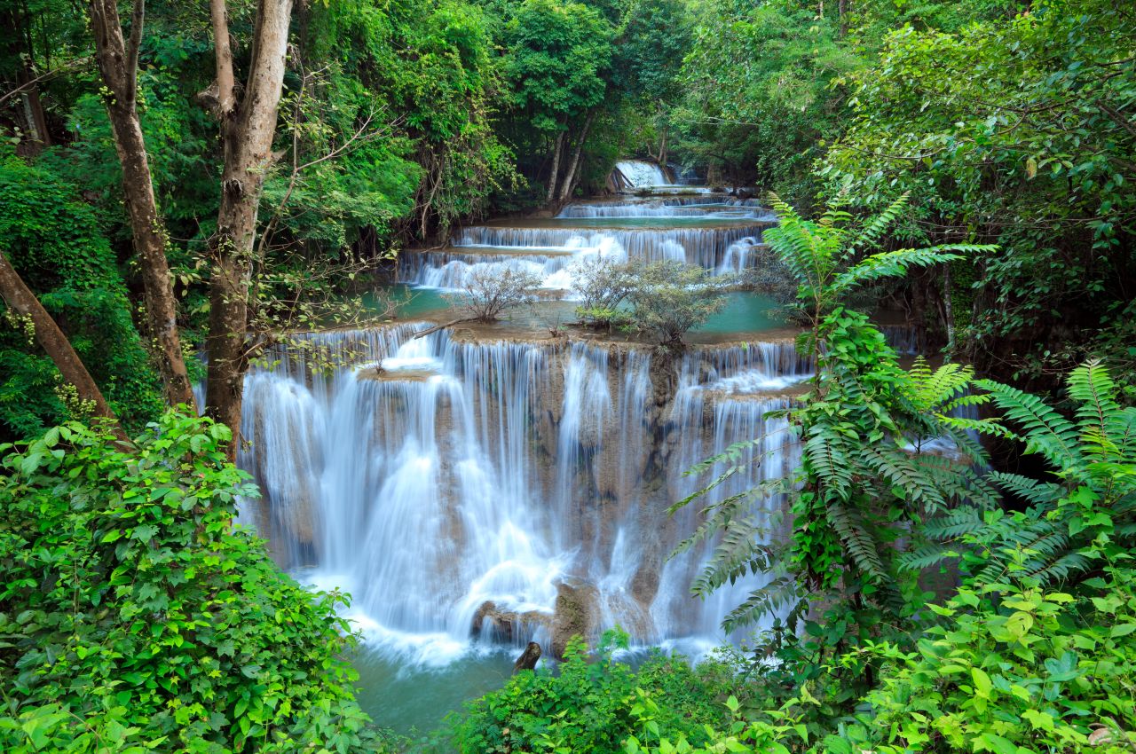 Am frühen Morgen brechen Sie auf, um den Erawan Wasserfall noch vor dem großen Besucherandrang zu erreichen. Der mehrstufige Wasserfall zählt zu den schönsten Naturattraktionen Thailands und erstreckt sich über sieben Kaskaden. In den türkisfarbenen Becken, umgeben von dichtem Dschungel, haben Sie Gelegenheit zu baden, zu fotografieren oder die tropische Atmosphäre zu genießen. Ein gut angelegter Pfad führt entlang der unteren Stufen des Wasserfalls und ermöglicht verschiedene Perspektiven auf die eindrucksvolle Landschaft.
